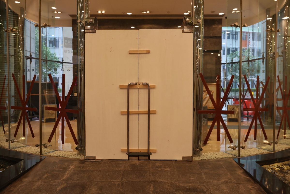 有酒店使用木板保護玻璃 【編輯:洪少葵】