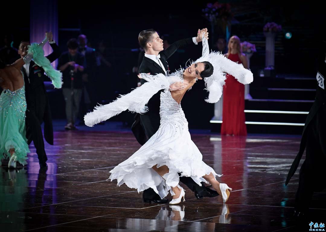 7月16日晚,2025第二十屆世界盃國際標准舞公開賽在深圳福田會展中心舉行。當晚,國際公開甲A組拉丁舞、職業組摩登舞選手參賽。本屆賽事,吸引來自美國、俄羅斯、英國、意大利、冰島、澳大利亞、捷克、立陶宛、愛沙尼亞、斯洛文尼亞、韓國、日本、哈薩克斯坦、阿聯酋等35個國家和地區的國標舞選手,以及國內34個省級行政區的舞者前來參賽,其中包括國際最高水平組別四大組別現役世界冠軍選手。據悉,共計600多個代表隊的7000餘名選手參賽。(香港中通社 陳文攝)
