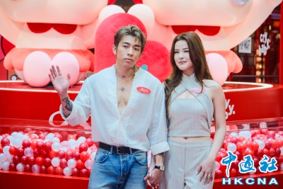 香港新聞網7月24日電(記者 許其皓)7月24日,CRYBABY主題活動“CRYBABY PLAYGROUND”在香港又一城開幕。活動於7月25日至8月31日舉行,以CRYBABY熱門盲盒款式Crying For Love系列為主題,以多個巨大盲盒公仔打卡位組成CRYBABY遊樂場。歌手Tyson Yoshi與妻子Christy出席活動。