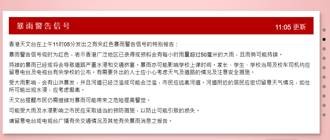 香港天文台改發紅色暴雨警告信號及山泥傾瀉特別提示分享到: