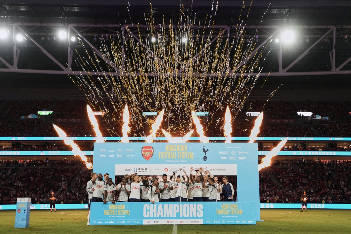 圖源:TEG Sport 熱刺領隊法蘭克對比賽結果、作客香港以及啟德主場館的體驗非常滿意。當被問到是否希望來年重返香港踢季前比賽時,他的回答是“絕對希望再來”。法蘭克表示:“這不像是友誼賽,反倒更像一場正式、激烈的對抗賽。今仗門票銷售一空,而球迷亦非常熱情,所有安排都堪稱完美。酒店、訓練場質素都很好,當然,比賽場地的質素也很好,我們都非常滿意。” 過去一星期,香港成為足球界的焦點。阿森納、熱刺、利物浦及AC米蘭4支歐洲勁旅來到啟德主場館作賽,展示啟德體育園的魅力,鞏固香港作為亞洲舉辦國際賽事中心的地位。在這場阿森納對熱刺比賽開始之前,啟德主場館更迎來了第100萬名觀眾,這個嶄新體育場的成功可見一斑。 香港足球盛會的兩場比賽,合計共有99679人到場,其中49704名球迷到場觀看了AC米蘭4:2戰勝利物浦的“渣打盃”。遊客來自四面八方,其中約 35% 來自海外球迷,他們在過去一周來到香港觀看足球比賽,並且在此旅遊。 首屆香港足球盛會由全球賽事製作及推廣機構 TEG Sport 主辦,並獲中國香港足球總會認可,體現了雙方致力將體育運動益處推廣至全港的承諾。 TEG Sport 執行董事 Rachael Carroll 表示:“對於所有參與者來說,香港足球盛會是一次激動人心的經歷。我們兌現了承諾,為香港球迷帶來前所未有的體驗。感謝各家球會、合作夥伴、香港特別行政區政府以及所有支持香港足球盛會的熱情球迷。” Rachael Carroll補充指,今次賽事設定了極高標準,但一切只是開始,未來會繼續努力為香港帶來最精彩的國際體育賽事,讓大家留下畢生難忘的回憶。 香港足球盛會的首場比賽渣打盃賽事由香港特別行政區政府、文化體育及旅遊局、大型體育活動事務委員會支持。(完) 【編輯:梁嘉軒】
