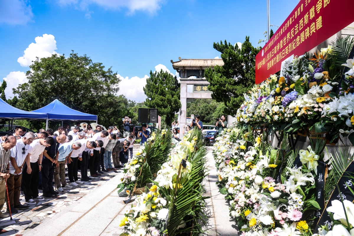 香港新聞網8月9日電(記者 曹文毓) 今年是中國人民抗日戰爭暨世界反法西斯戰爭勝利80周年。8月9日,由“原東江縱隊港九獨立大隊老游擊戰士聯誼會”主辦、西貢民政事務處贊助的“紀念抗日英烈謁碑日”儀式上午10時在香港西貢斬竹灣抗日烈士碑園舉行。原東江縱隊港九獨立大隊的老游擊戰士、中央人民政府駐香港機構代表、香港特區政府部門代表、香港立法會議員和區議員,以及社會各界團體和民眾等出席。