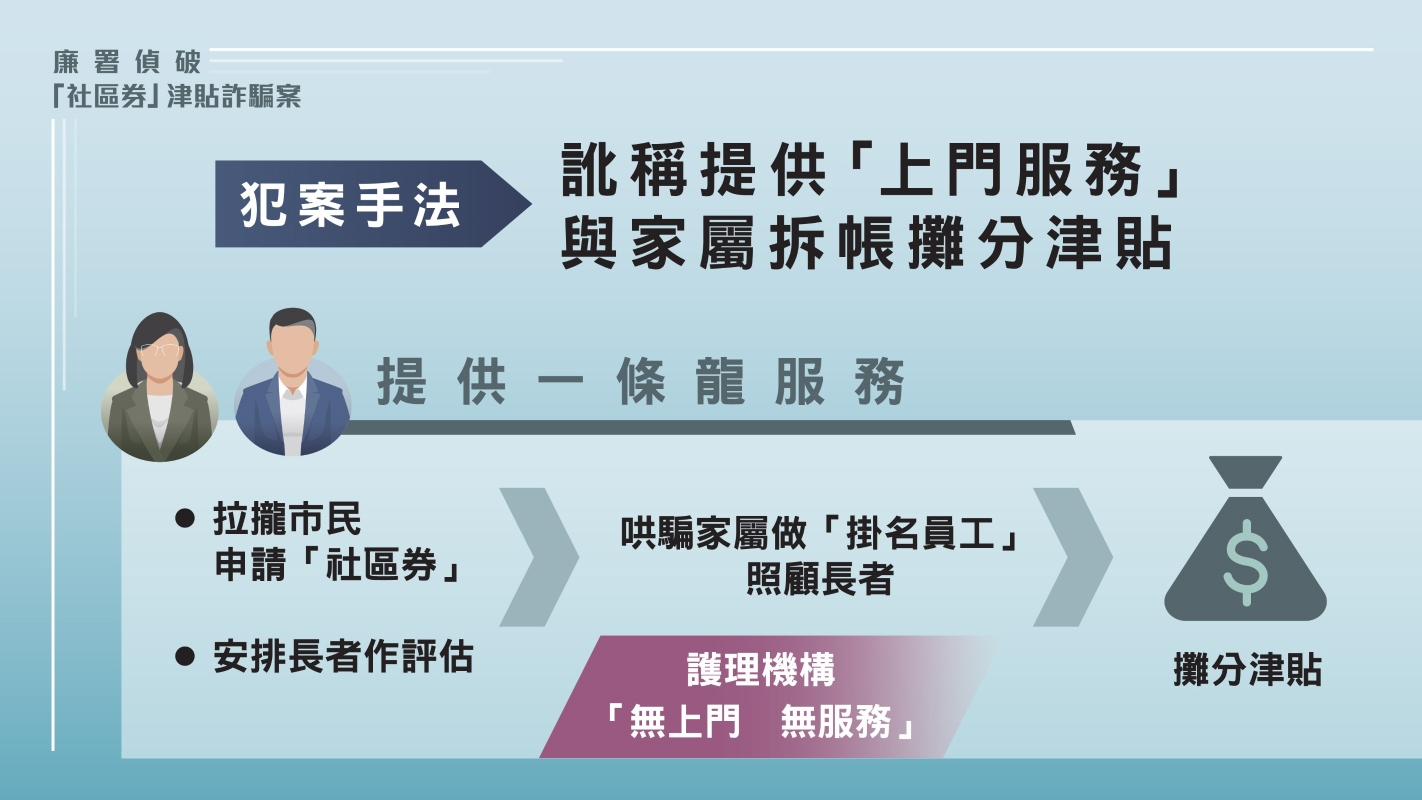 香港廉政公署網站圖片 廉署早前接獲社署轉介貪污投訴,懷疑有人以不法貪腐手段,詐騙政府批出“社區券”計劃津貼,經深入調查後拘捕兩男三女,年齡介乎27至57歲。被捕人士包括兩名主腦,分別為一名註冊護士及一名註冊職業治療師,二人各自經營私營護理機構;其餘三名被捕人士為其中一間護理機構的員工。 廉署調查發現,涉案兩間護理機構先後申請成為“社區券”計劃下的認可服務單位。被捕人士涉嫌以其醫護專業身份及人脈,唆使市民為長者申請參加“社區券”計劃,向社署訛稱其護理機構為長者提供家居照顧及支援服務,藉以詐騙政府批出津貼,其後由護理機構及申請人的家人攤分津貼,每名申請者每月涉款最高逾一萬元。 廉署調查顯示,涉案期間該兩間護理機構透過“社區券”計劃,每月向約20至200名長者提供家居照顧及支援服務,獲發津貼共約1800萬元。 廉署指,絕不容忍有人利用社福政策,詐騙公帑,中飽私囊。除採取執法行動,廉署已主動替社署檢視“社區券”計劃運作程序,並會進一步提供務實的建議及指引。(完) 【編輯:淩玉輝】