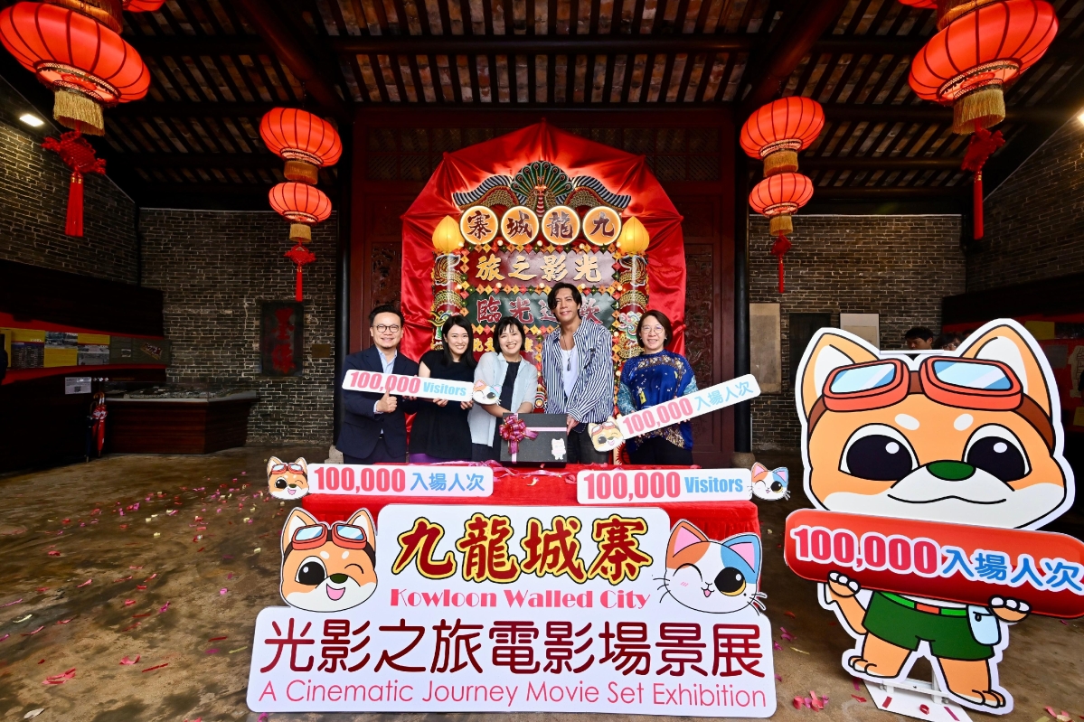 圖為場景展第10萬名參觀者(中)(圖源:政府新聞處) 九龍城寨光影之旅電影場景展由香港特區政府文化體育及旅遊局轄下文創產業發展處策劃,並由電影發展基金資助。18日,康樂及文化事務署助理署長馮妙玲、文創產業助理專員兼香港電影發展局秘書長麥聖希和《九龍城寨之圍城》演員張文傑親臨場景展,向第10萬名參觀者送上紀念品。 據康文署介紹,是次場景展由香港電影金像獎最佳電影《九龍城寨之圍城》的幕後團隊精心製作,並特別於九龍城寨原址──現時的九龍寨城公園重構場景,免費開放給予公眾參觀,以吸引更多本地及海內外遊客參觀。展覽呈現電影中的經典場景,並融合本土傳統工藝元素及結合大型投影,務求活現城寨日常,讓參觀者有難忘的體驗,及欣賞到香港電影從業員匠心獨運的創意及精益求精的精湛工藝。 電影場景展覽美術指導王慧茵早前接受中通社等媒體訪問時表示,除了衙門是古建築、需要注意保育外,思考如何融合該處清朝的建築風格與電影80年代的背景,也是他們需要花功夫的地方。(完) 【編輯:淩玉輝】
