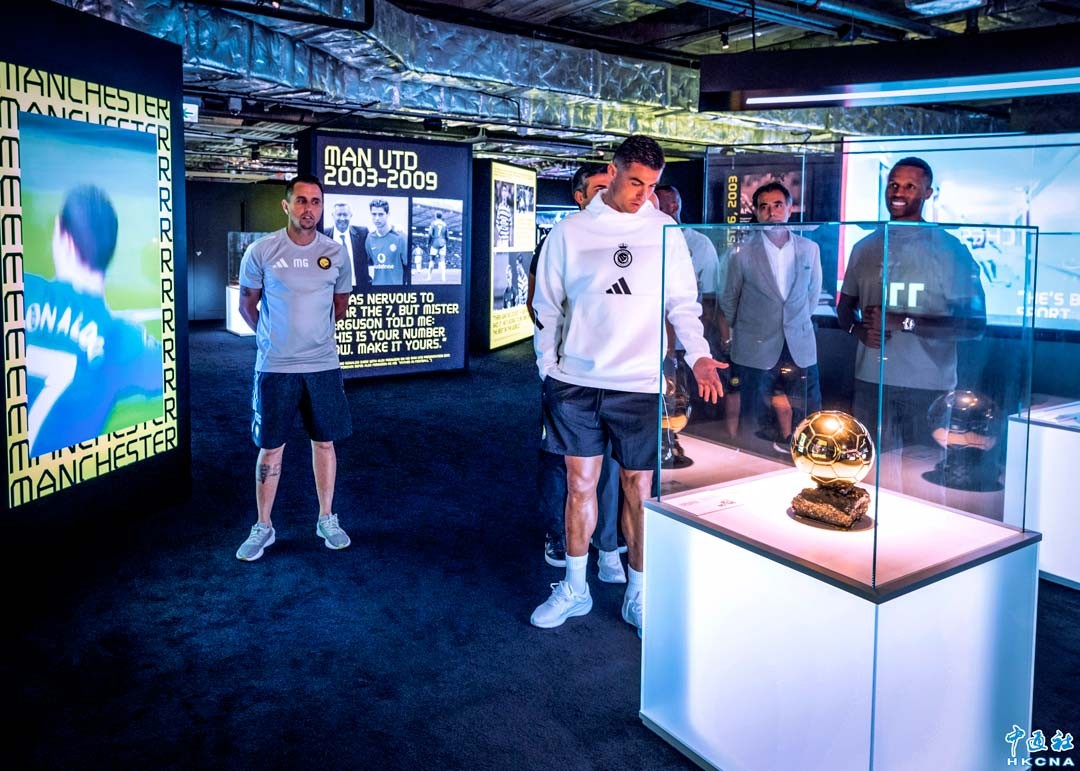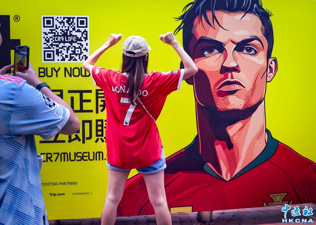 葡萄牙著名足球運動員克里斯蒂亞諾·羅納爾多為準備本周賽事提早到港練習,8月17日參觀位於K11 MUSEA的CR7®️ LIFE香港博物館,體驗這個以其足球旅程為主題的展覽空間。參觀過程中,克里斯蒂亞諾·羅納爾多與自己的蠟像互動,並親身體驗場內多項互動體驗,包括複製並重現他在里斯本的第一個房間以及其YouTube頻道《UR Cristiano》的錄影室。 香港中通社圖片