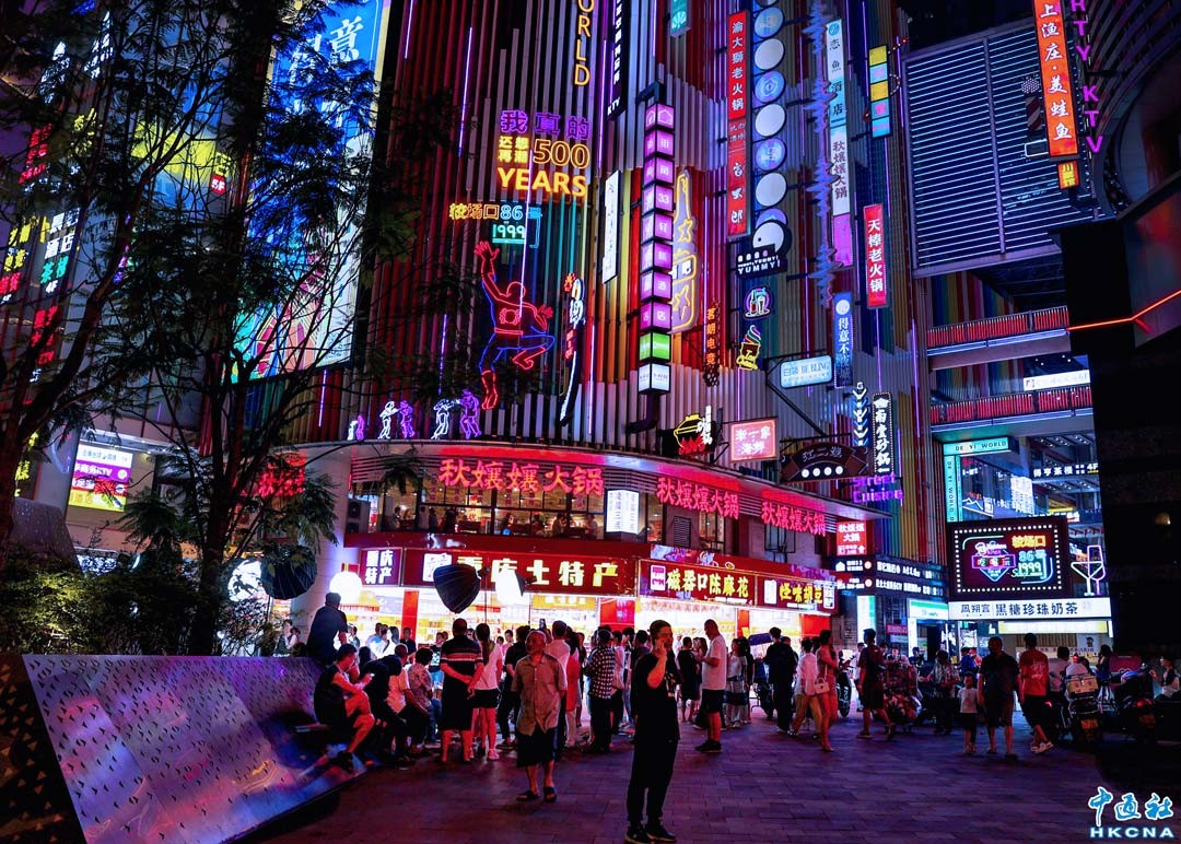 8月21日,中國國家能源局對外發布中國7月全社會用電量,達1.02萬億千瓦時,同比增長8.6%。中國全社會用電量7月歷史性突破萬億千瓦時大關,在全球屬於首次。圖為重慶得意世界商圈。(香港中通社記者 徐文峰攝)