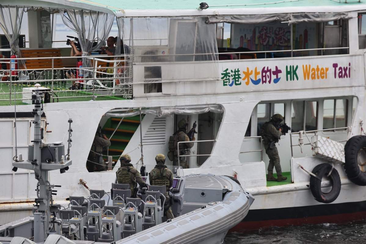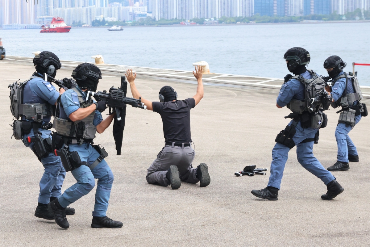 演習模擬有多名極端分子在郵輪碼頭發動恐怖襲擊,警方衝鋒隊、反恐特勤隊衝入碼頭,在激烈槍戰後將他們制服。