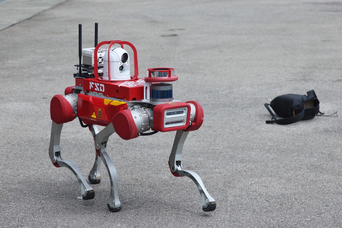 演習模擬警方在現場地下發現一個電線外露的黑色背囊,懷疑裏面藏有爆炸品。消防處增派機械狗及滅火機械人到場支援。機械狗配備熱成像鏡頭,可以實時監測可疑背囊。