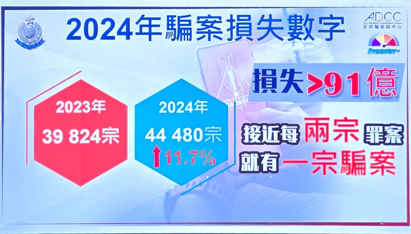 金融管理局陳景宏助理總裁(左)與及警務處商業罪案調查科反詐騙協調中心黎達程督察。