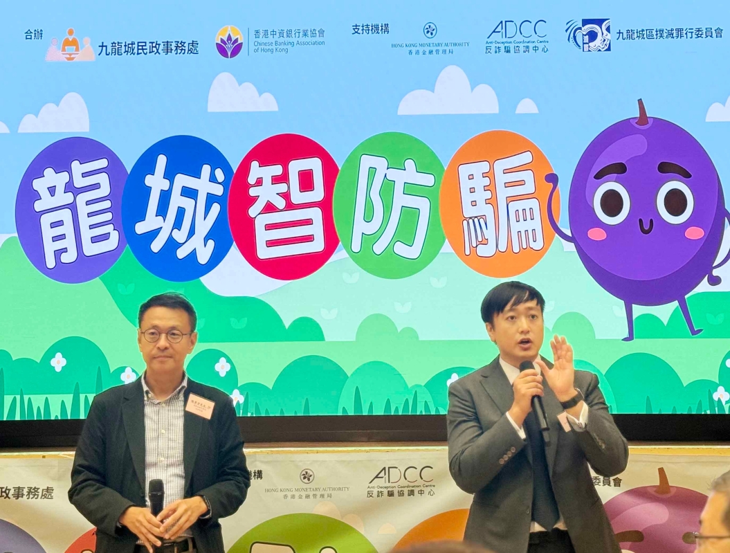 香港新聞網8月30日電 騙徒手法層出不窮,市民無時無刻都要提高警覺,並提醒家人和朋友齊齊“智防騙局”,免誤墮騙徒陷阱。8月30日,香港九龍城民政事務處及香港中資銀行業協會在紅磡社區會堂合辦“龍城智防騙”講座。活動邀請到包括香港金融管理局陳景宏助理總裁與及警務處商業罪案調查科反詐騙協調中心黎達程督察,會上講者向公眾分享詐騙最新趨勢和行騙手法,並提供實用防騙貼士及講述銀行業為了保障客戶所採取的防詐騙措施,協助市民提高警覺,識破騙徒陷阱。香港啟德工商聯主席蔡艷珊等社會各界人士到場出席。