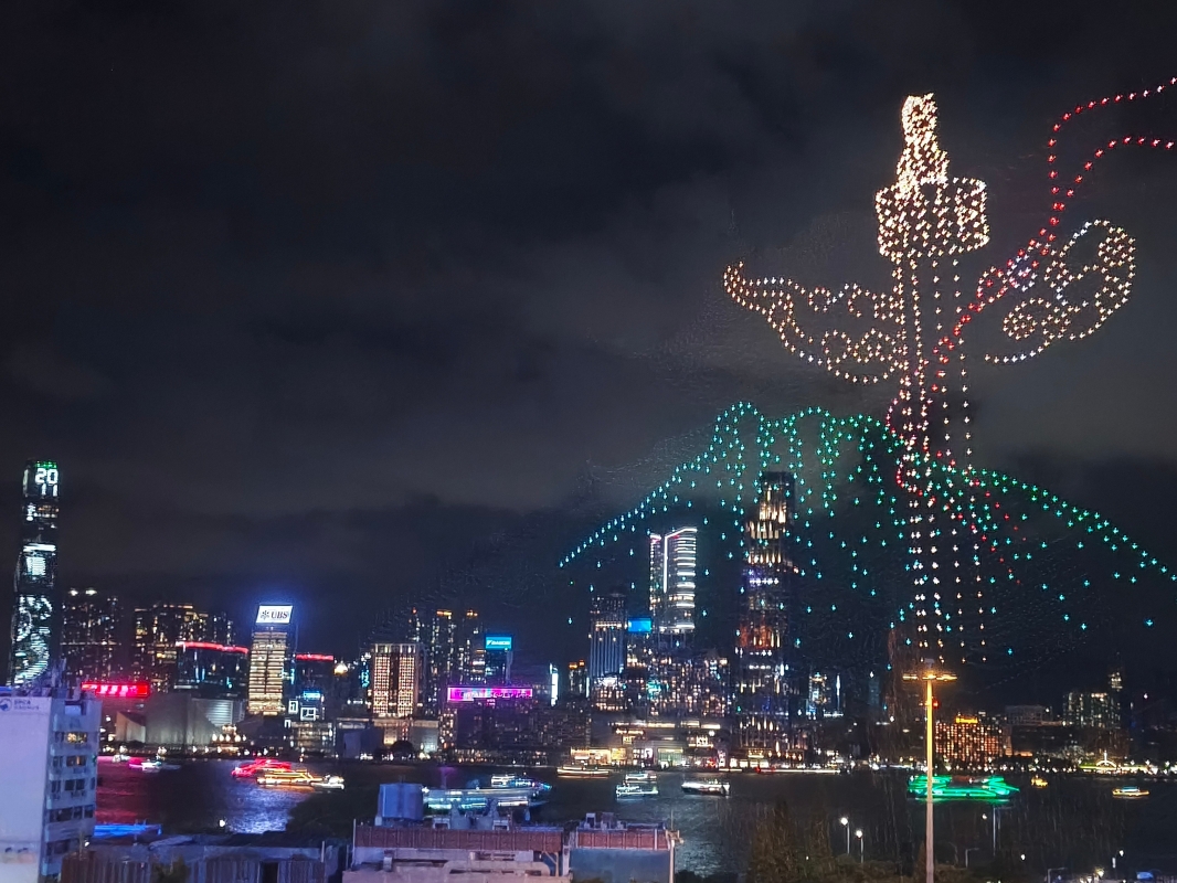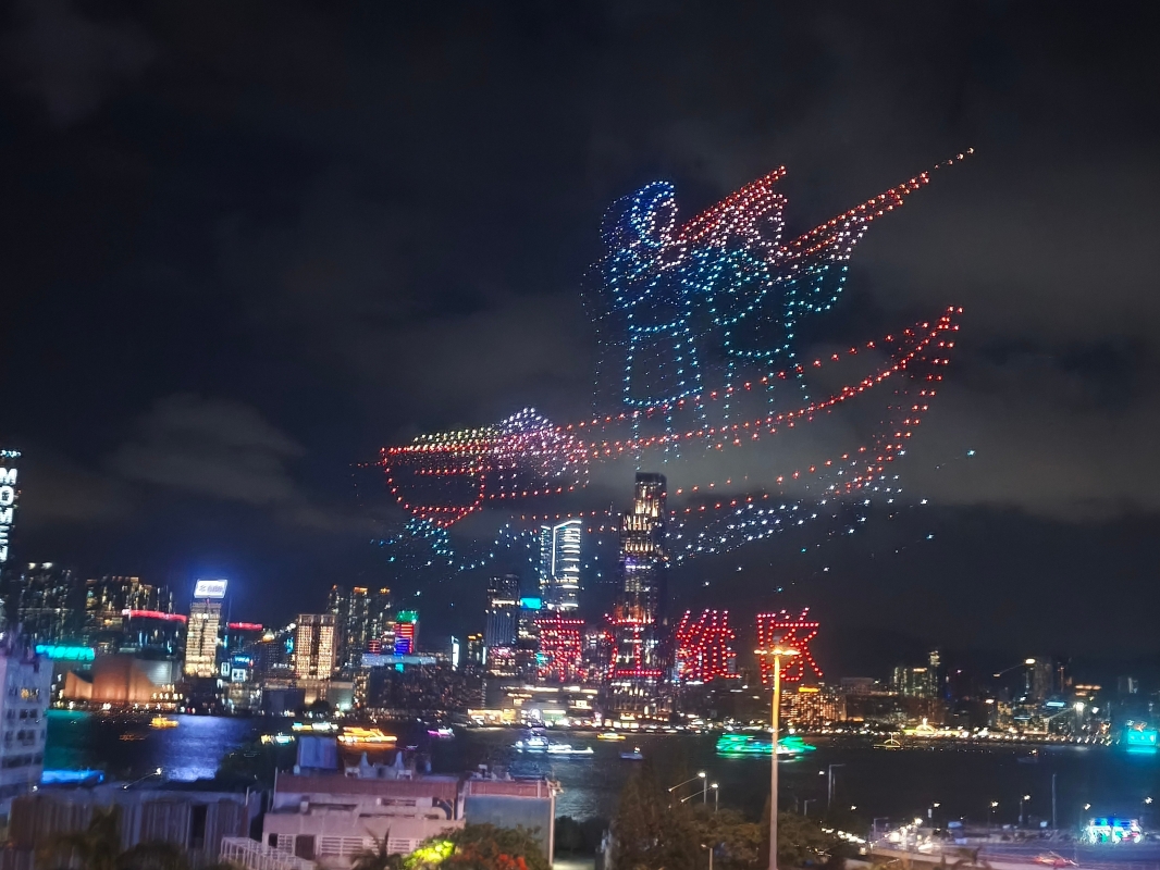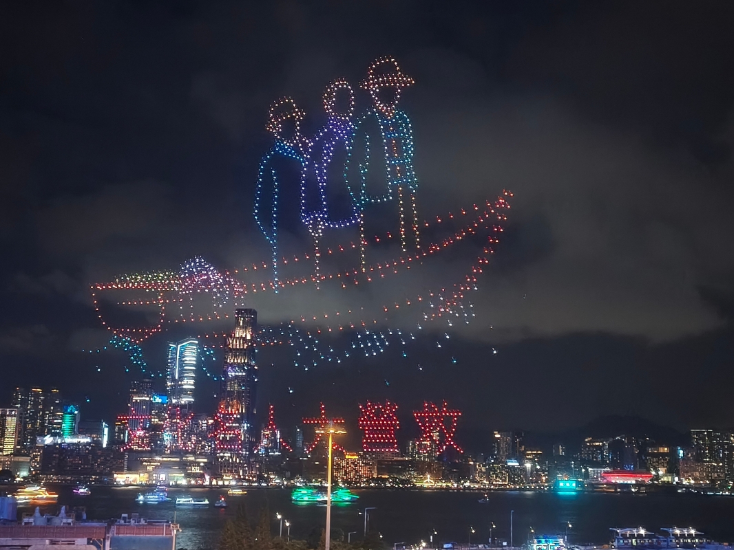 香港新聞網8月30日電(記者洪少葵) 為紀念中國人民抗日戰爭暨世界反法西斯戰爭勝利80周年,銘記歷史,致敬先烈,由紫荊文化集團主辦、紫荊雜誌社承辦,於8月30日晚上8:00在灣仔水上運動及康樂主題區舉行大型無人機匯演。 通過1200架無人機點亮灣仔夜空,以科技加藝術方式反應抗戰爆發後,中國人民眾志成城奮勇抗戰,贏得最終勝利和民族解放的偉大事跡。
