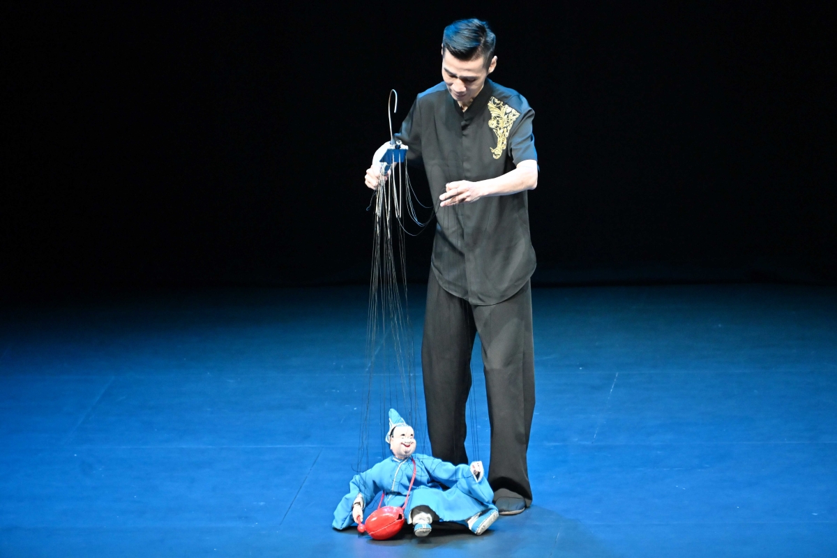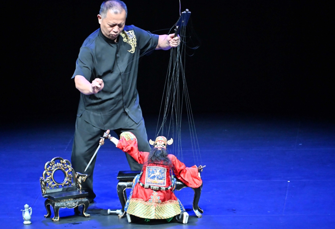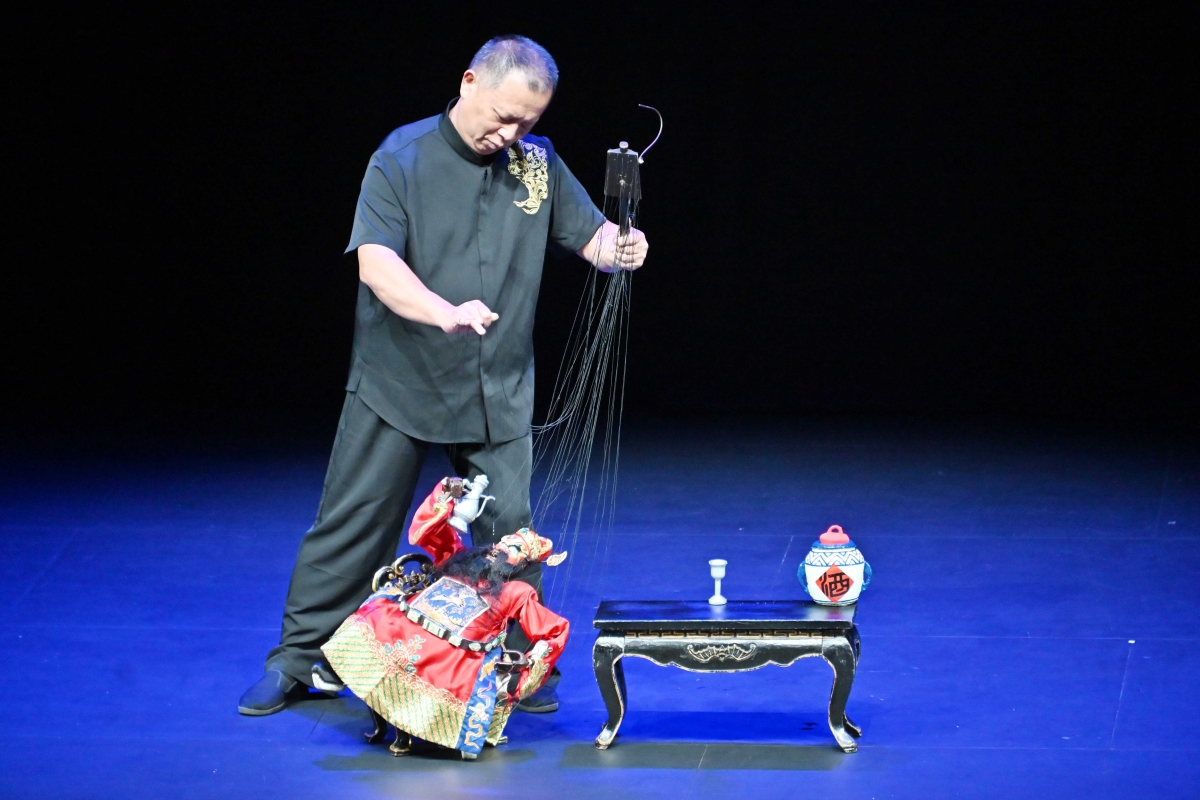 香港新聞網9月12日電(記者洪少葵)9月12日,香港康文署“中華文化節2025”在西灣河文娛中心劇院舉辦“普及中華文化藝術專場”。超過300名中小學師生獲邀免費欣賞由泉州市提線木偶戲傳承保護中心帶來的《古藝新姿木偶戲》演出,感受這項國家級非物質文化遺產的獨特魅力。據介紹,泉州提線木偶戲源於秦漢,傳承至今,保存獨有的劇種音樂“傀儡調”,並發展出一套成熟的操線功夫和獨具特色的偶頭雕刻、木偶造型和製作工藝,2006年被列入首批國家級非物質文化遺產代表性項目名錄,於2012年入選聯合國教科文組織保護非物質文化遺產優秀實踐名冊。《古藝新姿木偶戲》內含七齣經典小戲,展現閩南民俗千年技藝。泉州提線木偶戲的一大特色是模擬真人的所有動作及表情。每個木偶的提線由16至40條不等,全憑演員雙手操縱,精緻準確地做出解衣、拔劍、接傘等各種姿態動作。