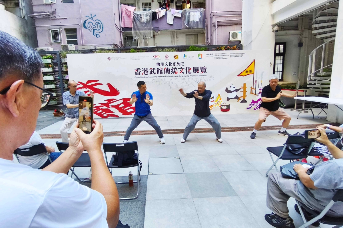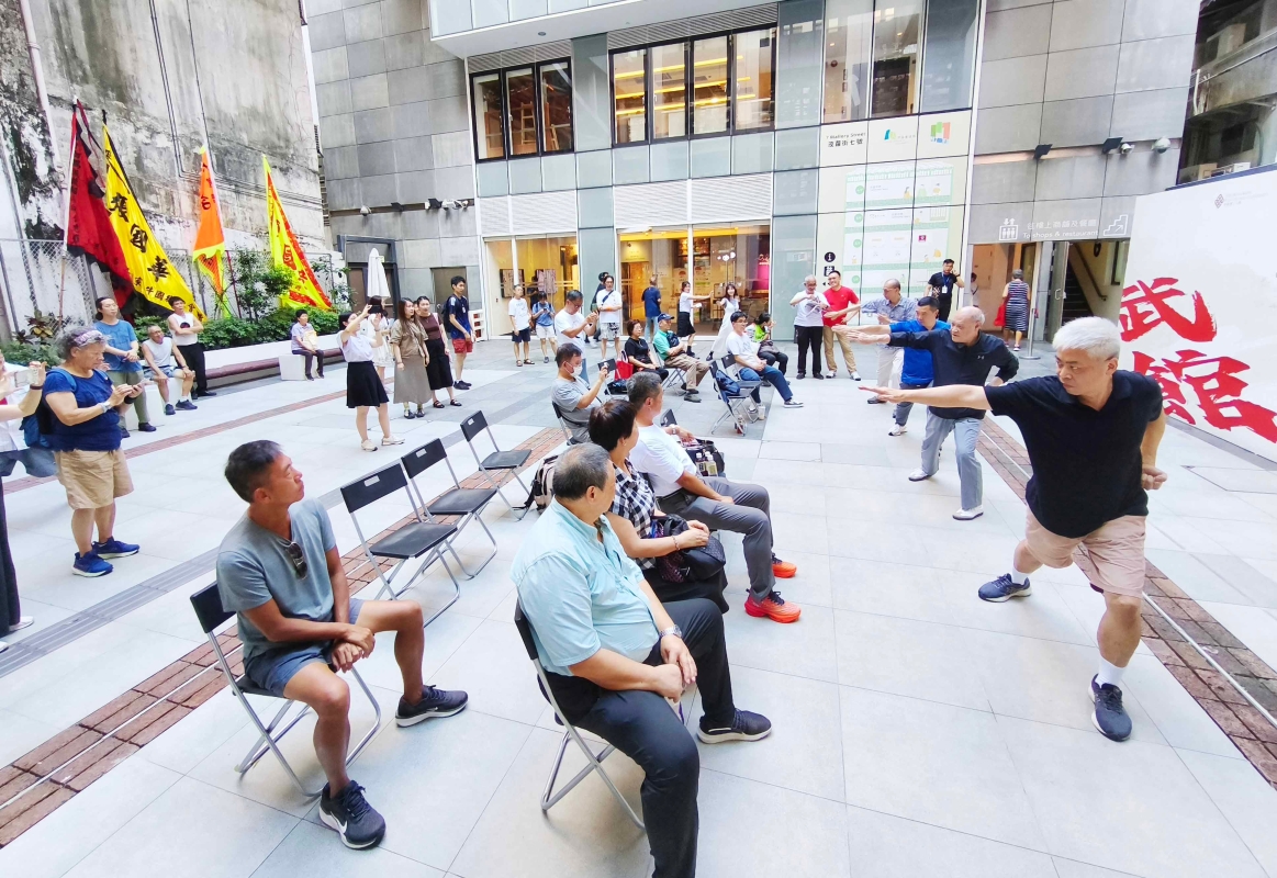 街坊和市民在灣仔茂蘿街7號參觀展覽和感受傳統武術的魅力