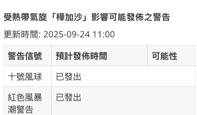 澳門氣象局指因“樺加沙”改發10號風球機會高分享到: