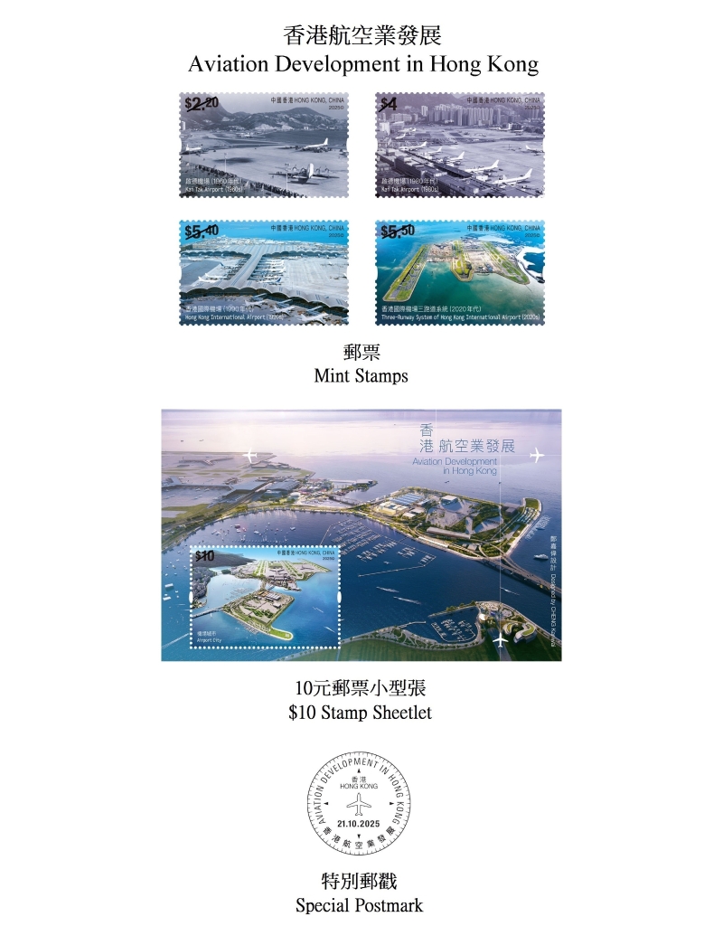 香港新聞網10月3日電 香港郵政3日宣佈,以香港航空業發展為題的特別郵票及相關郵品將於10月21日推出發售。