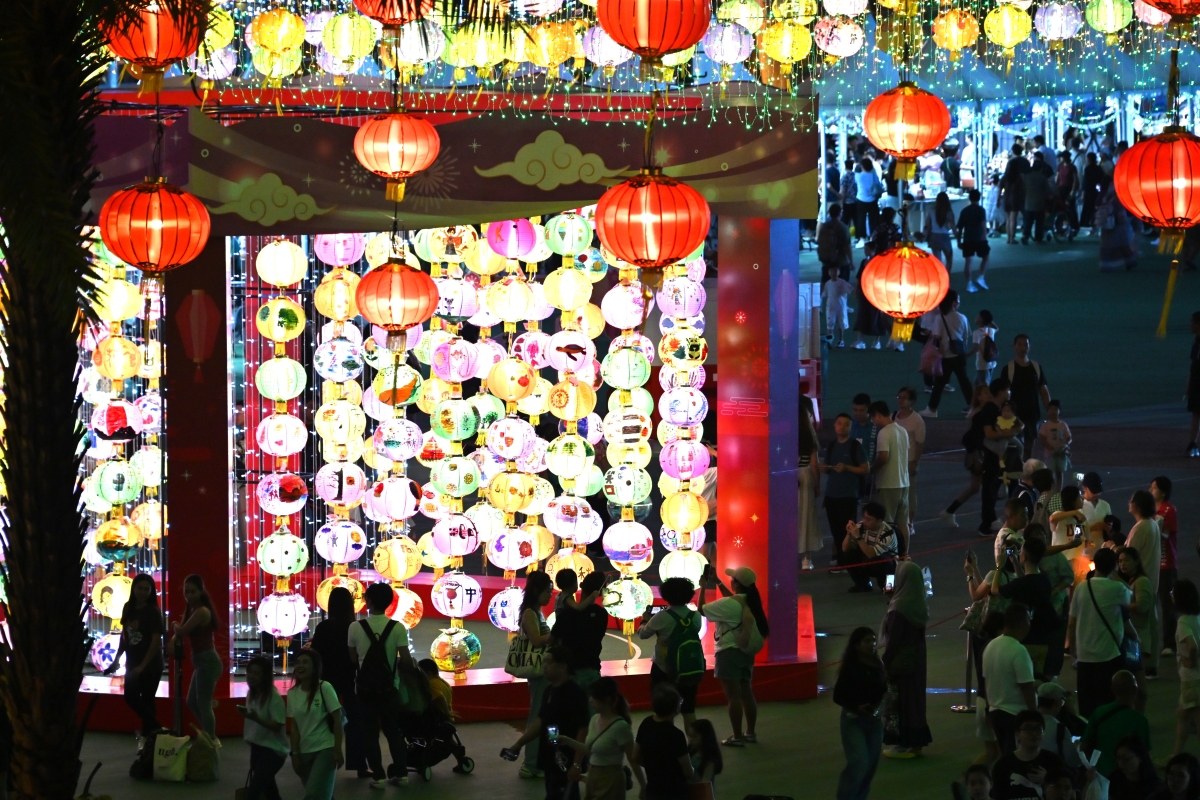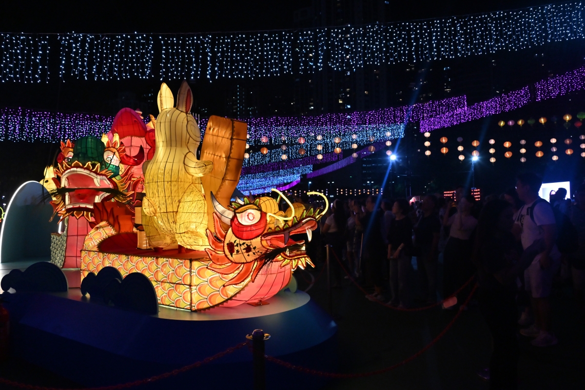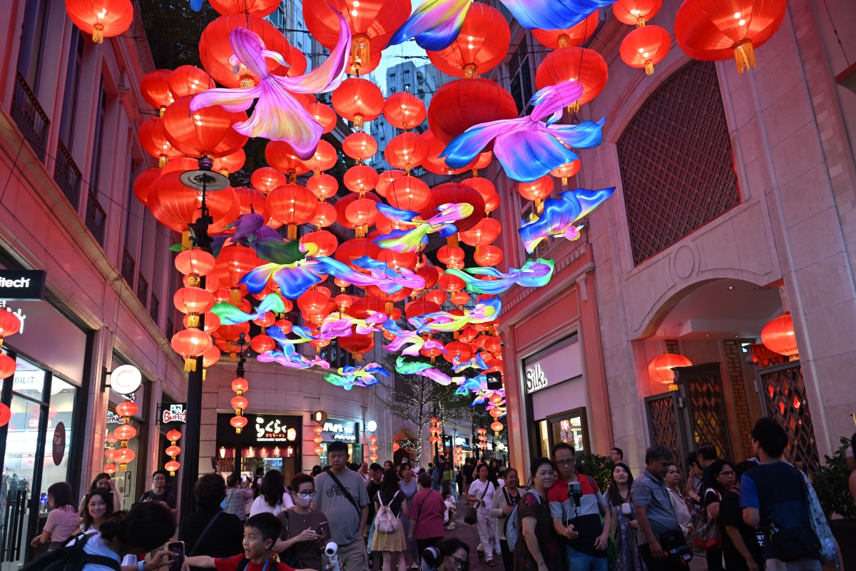 香港新聞網10月5日電(記者洪少葵)10月5日,內地“雙節”旅遊黃金周踏入第五天,赴港旅遊熱潮持續升溫。大量旅客蒞臨香港度假休閑。當天晚上,中秋節前夕的香港灣仔利東街人山人海,紅燈籠和金魚彩燈為中秋節增添喜慶氛圍。臨近的一級歷史建築“藍屋”點亮主題為“悅夜月藍”的彩燈藝術裝置,逾700個由香港藝術家和灣仔街坊手繪的花燈,吸引大批市民和遊客欣賞和拍照打卡。在銅鑼灣維園中秋節彩燈會更是內容豐富,除了展示不同主題的璀璨彩燈,亦會安排各式各樣的活動,并加入非物質文化遺產的元素,如傳統花燈扎作展示等,與大家共慶佳節。 中秋節正日(10月6日)將延長亮燈時間至凌晨12時。 據香港官方統計,自10月1日開始的黃金周首四天,內地訪港旅客突破87.7萬人次,較去年同期增長逾7%,同時海外旅客亦錄得約12.6萬人次,按年大幅上升超過30%,合計突破百萬人次。