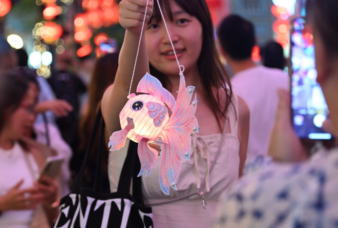 紅燈籠和金魚彩燈為中秋節增添喜慶氛圍
