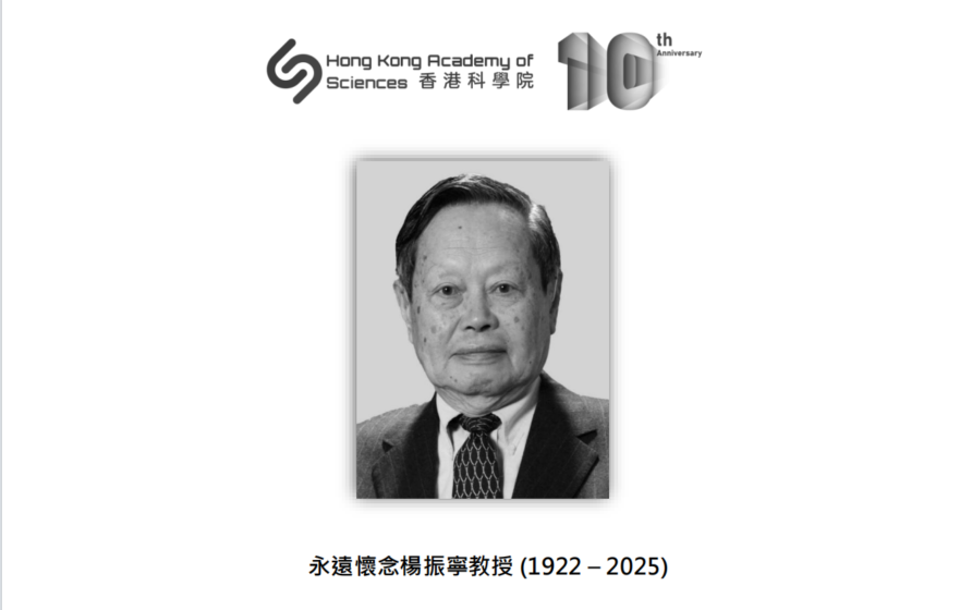哀悼文章指出:“楊教授自2015年香港科學院成立之初即為本院榮譽院士。他在粒子物理學領域的開創性研究,對現代物理發展影響深遠,更於1957年榮獲諾貝爾物理學獎,成就卓著。”