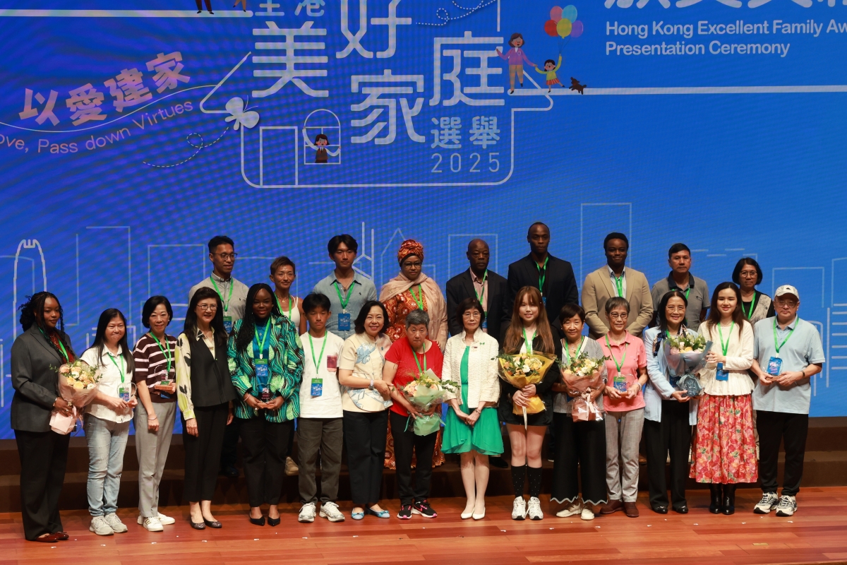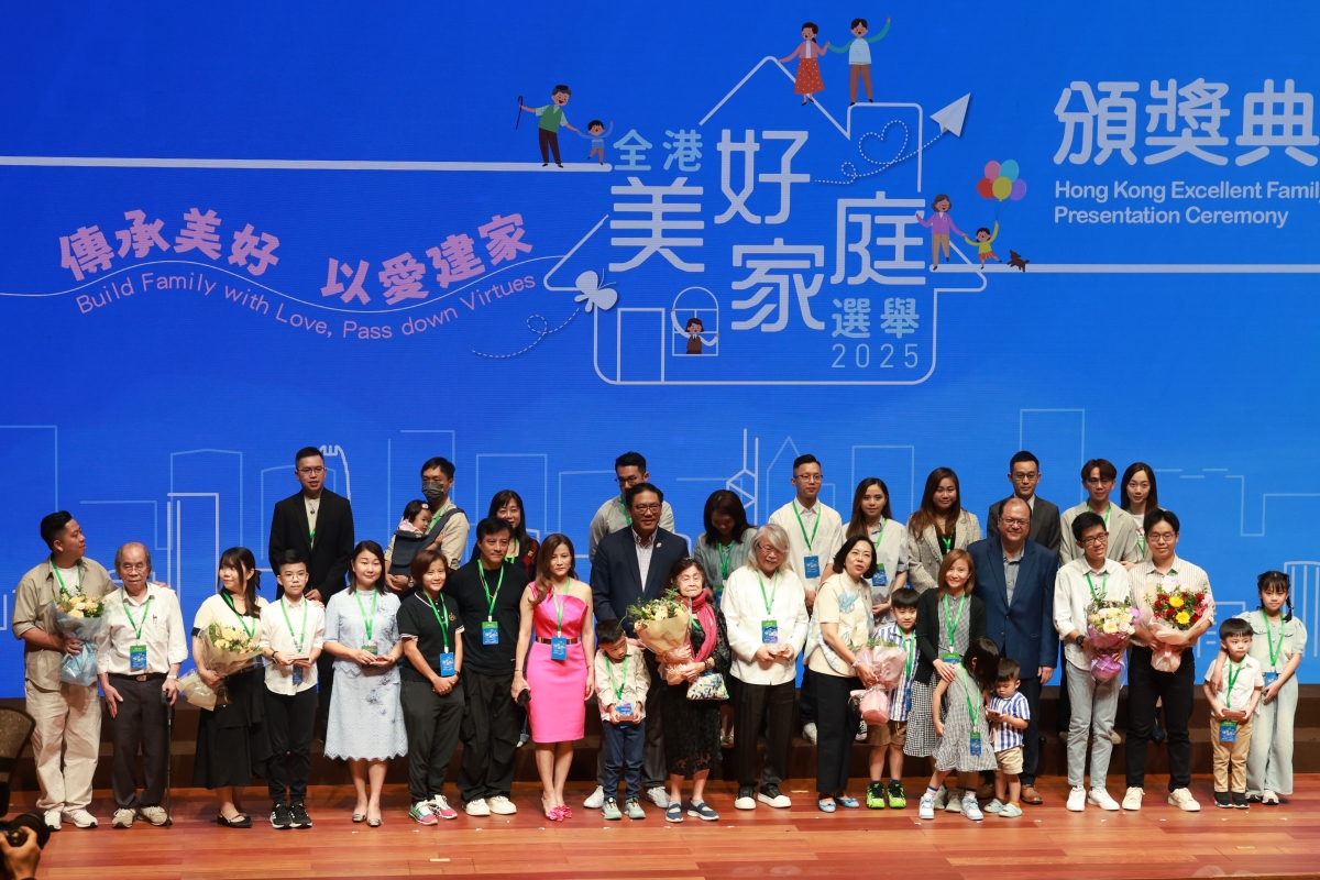 香港新聞網10月19日電 ( 圖文 鄧梓傑 )10月19日,香港特區民政及青年事務局聯同家庭議會在香港賽馬會演講廳舉行全港美好家庭選舉頒獎典禮。本次頒發的獎項有美好家庭獎共10名,良好家教家風傳承獎共5名,旨在以“建立穩固家庭關係 樹立良好家教家風”為重點,向普羅大眾宣揚良好家庭核心價值。