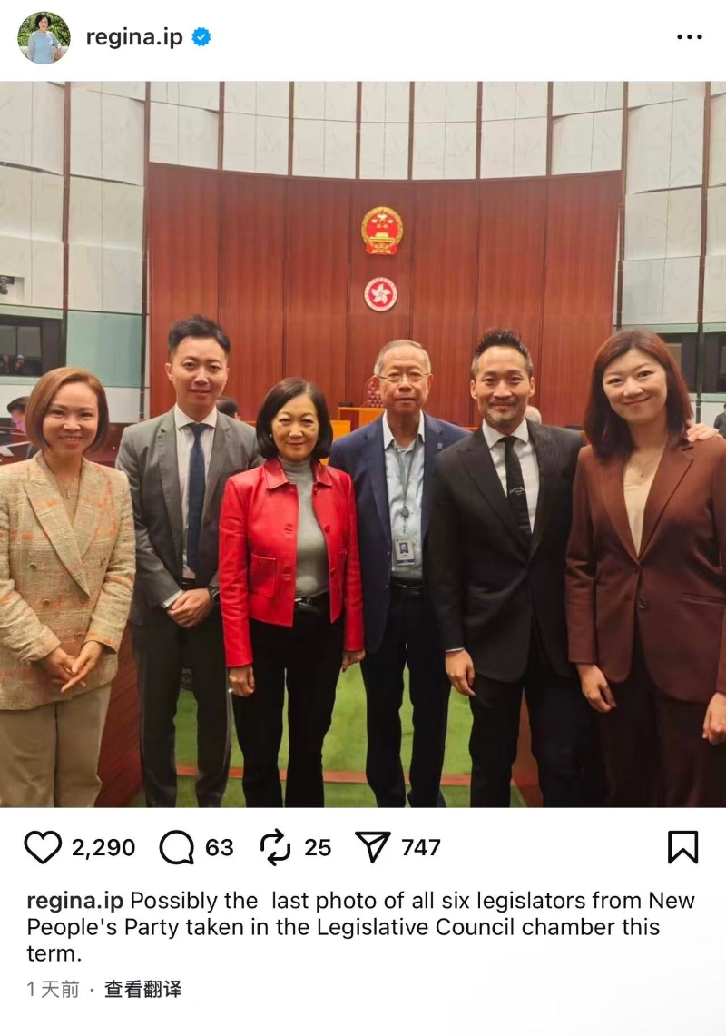 香港新聞網10月23日電 2025年香港特區立法會換屆選舉提名期將於24日開展,新民黨表示將於本周六25日舉行記者會,公佈新民黨參選名單。屆時各參選人將會出席及介紹政綱,並發表競選宣言。 立法會大會23日續會,葉劉淑儀會後面對記者追問時表示,“完成本屆工作感到很開心,自問做了很多事,參與審議多項重要法案。” 葉劉淑儀22日出席立法會最後一次大會時,與另外5名黨友在會議廳打卡,並在社交平台發文表示“可能是今屆新民黨在議會的最後一次合照”。