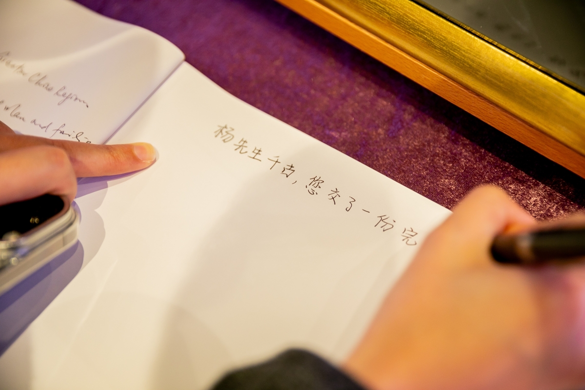 市民在簽署弔唁冊及留言,緬懷楊教授。