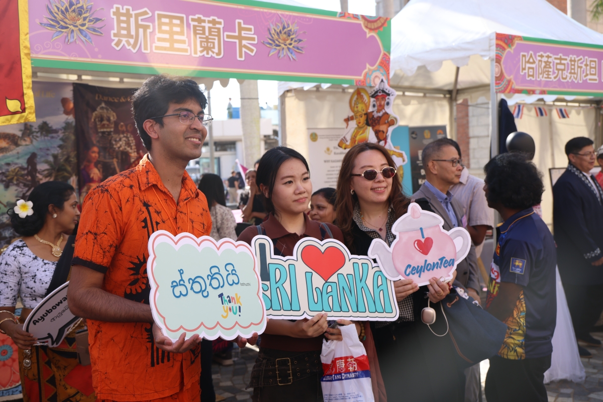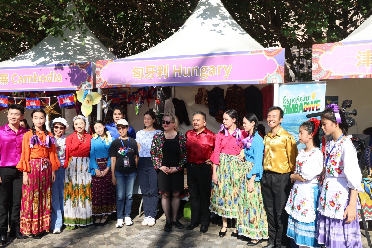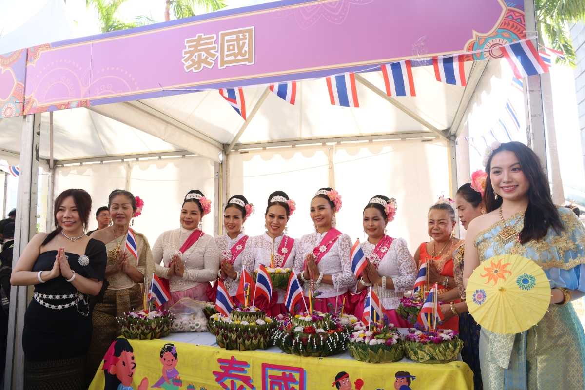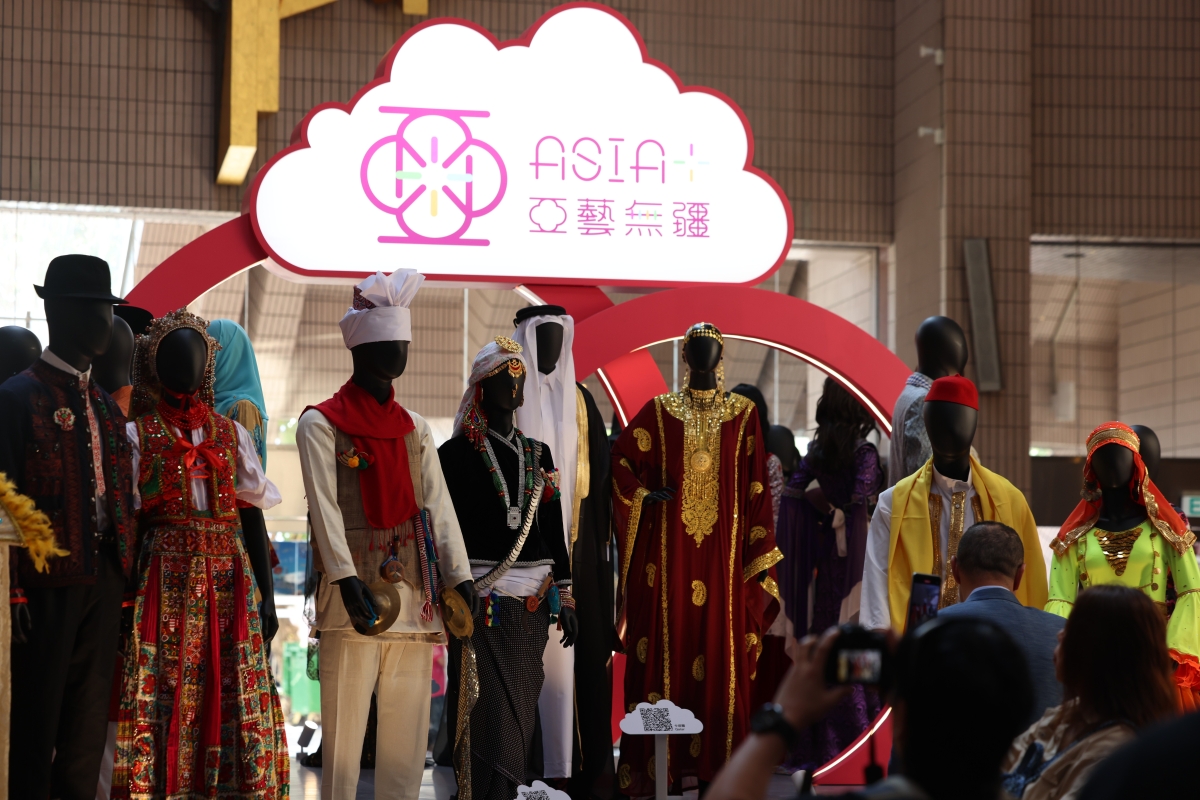 “亞藝無疆”藝術節重點節目之一“亞裔藝采+”在香港文化中心露天廣場及大堂舉行 表演嘉賓在文化攤位前留影