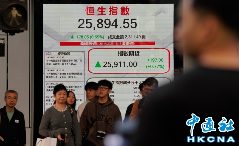 香港中通社11月25日電(記者 徐嘉儀)港股延續前一天走勢,25日高開高走,恒生指數收市報25894點,升178點。大市成交額為2311億港元。