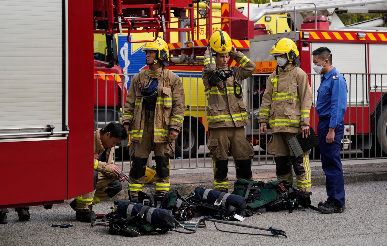 香港大埔宏福苑26日發生五級大火,至27日消防人員仍在撲滅火勢。