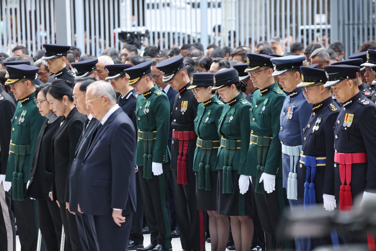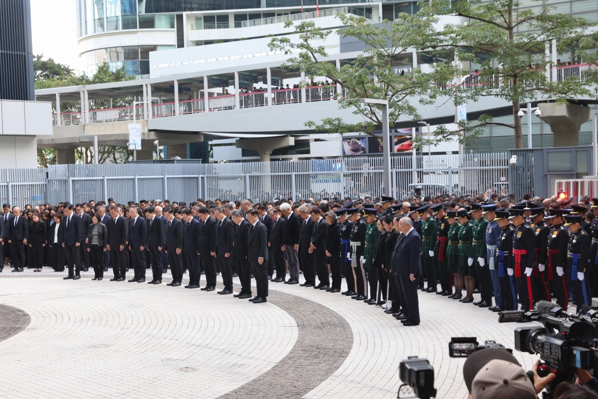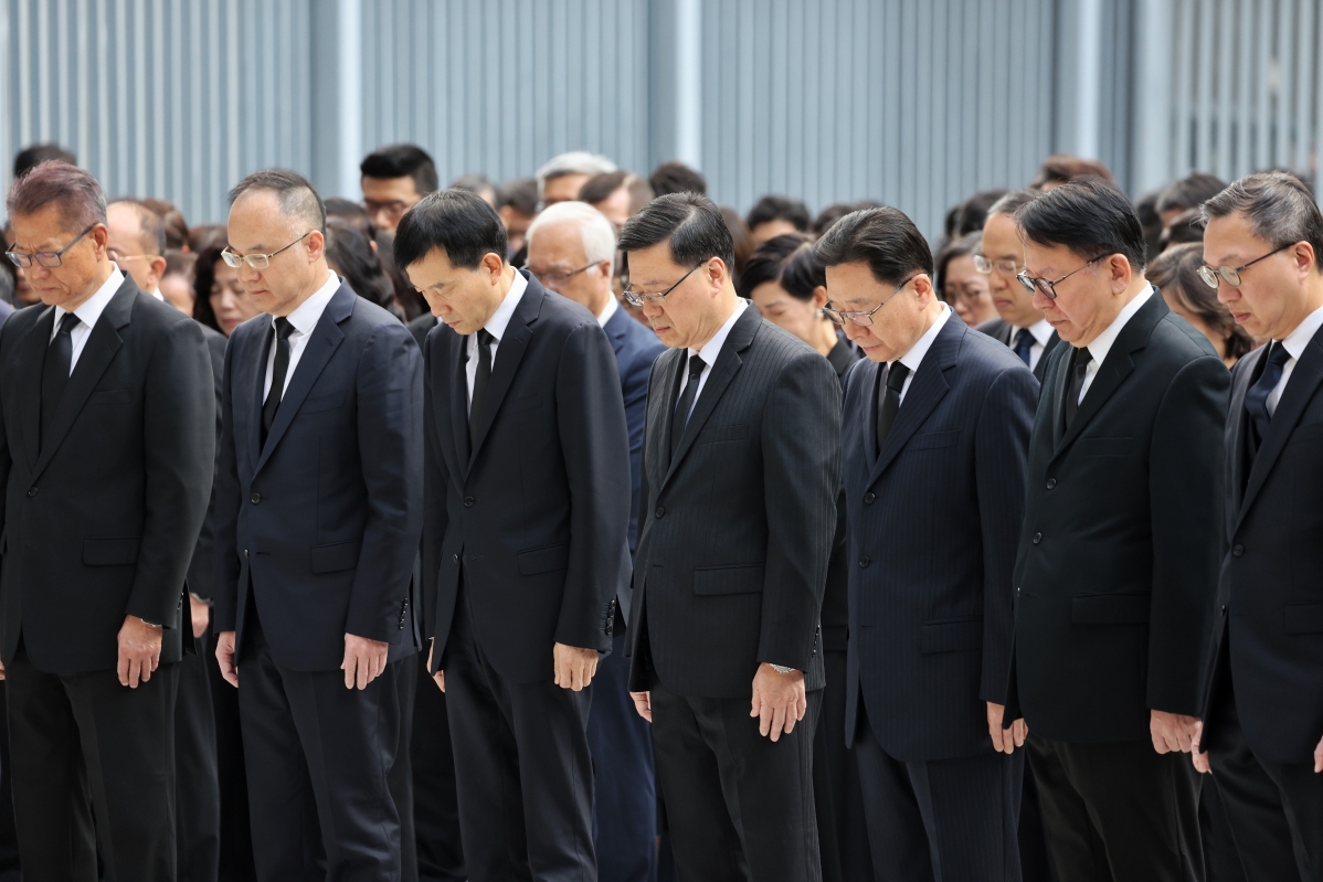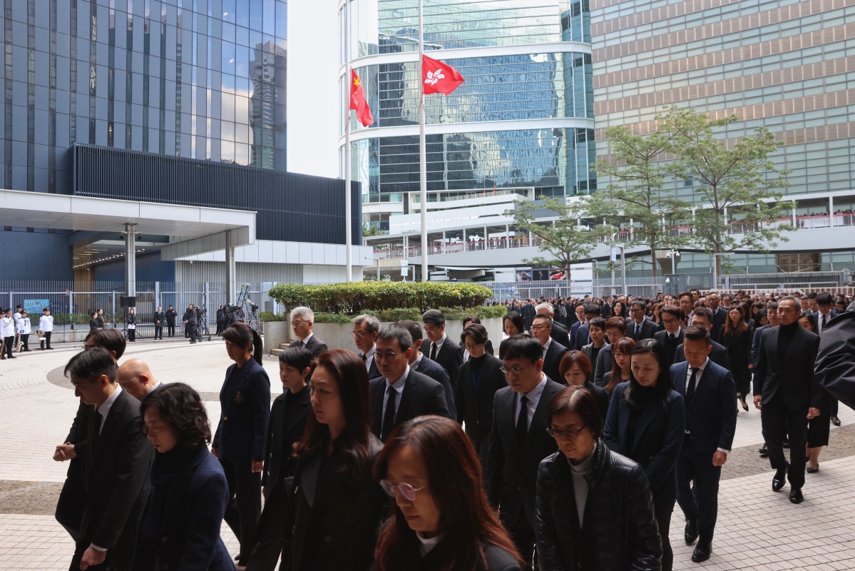 香港特區政府主要官員、行政會議非官守議員及公務員在政府總部沉痛哀悼在大埔火災不幸罹難的人士。
