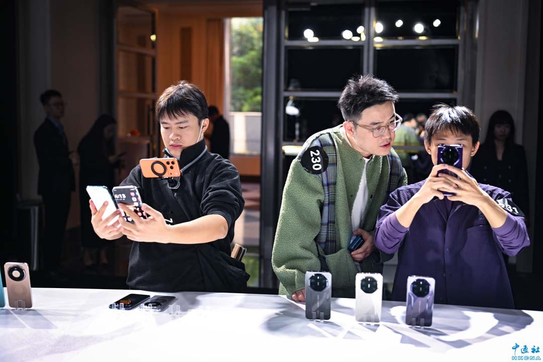11月25日,華為Mate 80系列 | Mate X7及全場景新品發布會舉行,華為多款新品亮相,全面展示其在智慧辦公、影音娛樂、智能家居等諸多場景的前沿創新成果,持續踐行為消費者打造極致的全場景智慧生活體驗的理念。“黑科技”是Mate系列最為鮮明的特征和創新基因,HUAWEI Mate 80系列首發戶外探索模式、HUAWEI Mate 80系列首發700MHz無網應急通信,穿透強,覆蓋廣,遭遇意外時,多一份連接,多一分希望。圖為多家媒體記者展區體驗。(陳文 攝)