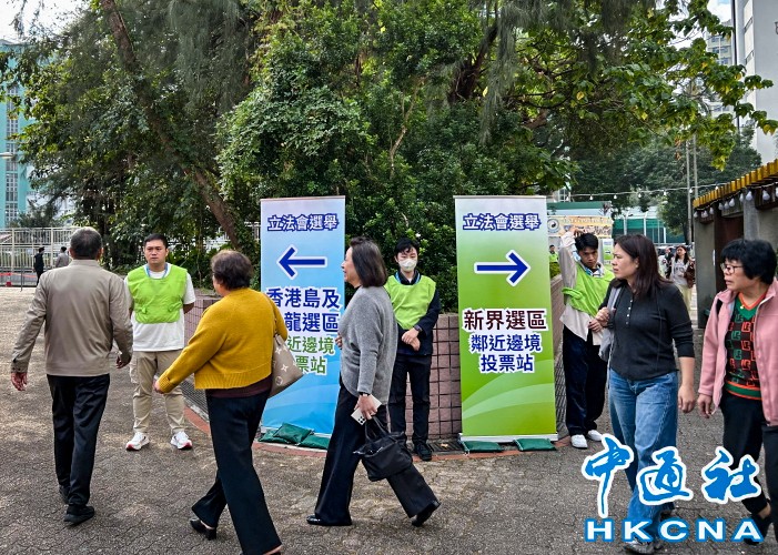 12月7日,香港立法會選舉投票日,大埔區的投票點設在大埔崇德黃建常紀念學校,現場市民絡繹不絕,有全家老小一起前來投票。 (香港中通社記者 陳爍 攝)