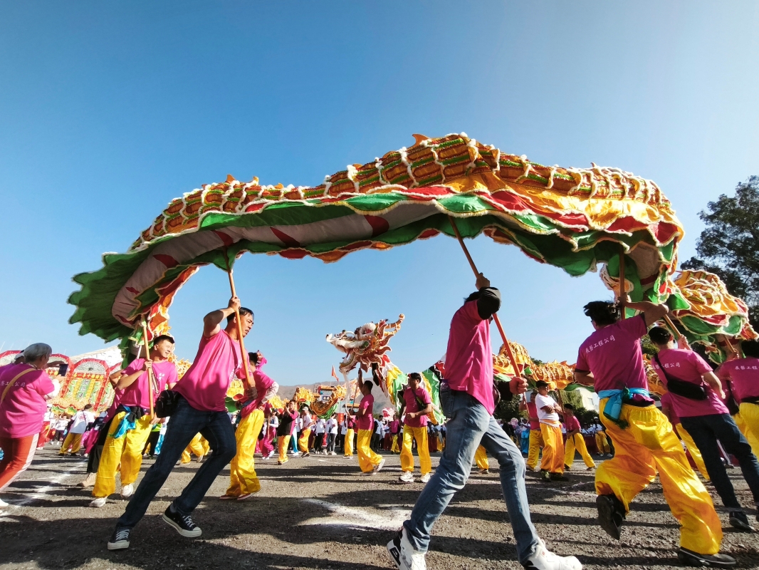 廈村鄉金龍起舞啟程趕赴錦田參加“錦田鄉酬恩建醮”。 【編輯:洪少葵】