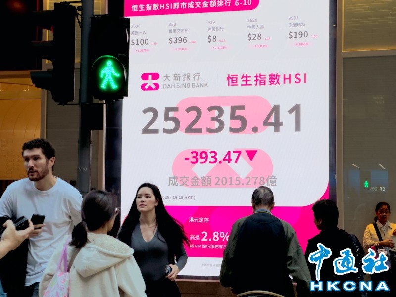 香港中通社12月16日電(記者 張明臻)外圍股市及A股向淡,港股承接弱勢,低開低走。恒指16日收報25235點,跌393點或1.54%;大市全日成交2015億港元。