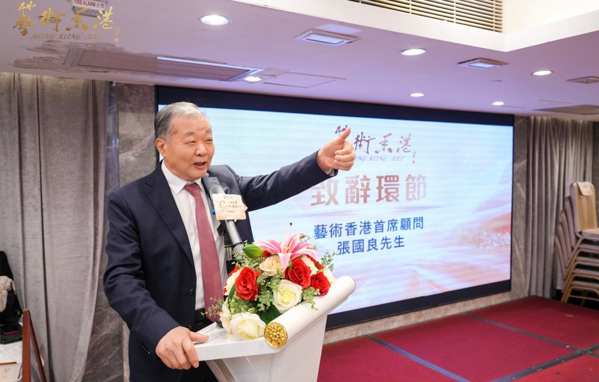 主辦方提供 《藝術香港》出品人張錦洲在致辭中回顧了十年來的點滴歷程,並對各界一直以來的支持表示感謝。他強調,《藝術香港》將繼續堅守“傳承中華文化、連接國際藝術、服務香港文壇”的初心,積極拓展藝術教育、社區參與與國際對話,為香港文化繁榮注入持續動力。 典禮上,大會特設“突出貢獻獎”,表彰長期支持文化藝術發展的傑出人士。獲獎者包括楊孫西博士及張國良先生,以感謝他們多年來對《藝術香港》及香港藝術生態的持續支持與推動。 晚宴期間還安排了豐富精彩的文藝環節,傳遞藝文工作者心系家國的情懷。此外,大會亦舉辦了“藝術香港周年慶拍賣會”,呈現多件藝術精品,推動藝術收藏與文化交流。
