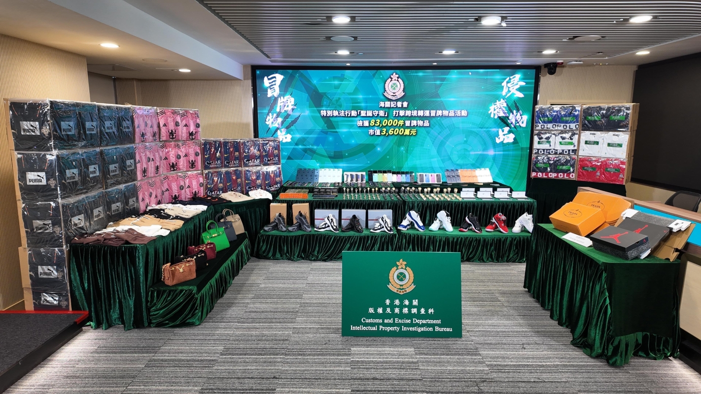香港新聞網12月24日電 香港海關24日發佈,近日採取代號“聖誕守衛”的執法行動,以在聖誕節前夕打擊跨境轉運冒牌貨物活動。行動中,海關偵破28宗相關案件,檢獲約8.3萬件懷疑冒牌貨物,估計市值逾3600萬港元。