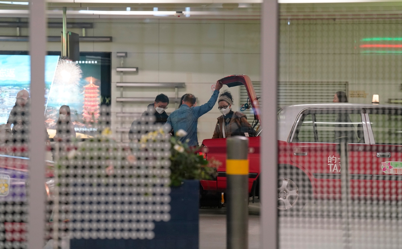 有抵港的市民與遊客乘搭的士離開高鐵站。 【編輯:洪少葵】