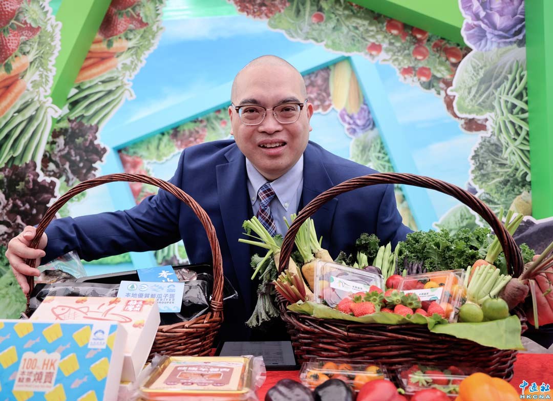1月9日,香港漁農自然護理署主辦的“2026本地漁農美食嘉年華”於旺角花墟公園開幕,活動為期三日,設逾400個攤位展銷本地漁農產品,為全港最大規模戶外漁農墟。今屆嘉年華重點展示科技農業應用,包括垂直氣霧耕作系統、智能農場模型及集裝箱生態養殖系統,推廣休閒漁農業發展。嘉年華免費入場,同期舉辦烹飪示範及舞台表演,吸引大批市民參與。圖為本地漁農業美食嘉年華籌辦委員會主席劉堅偉介紹本次嘉年華活動亮點(香港中通社記者 鄧梓傑 攝)
