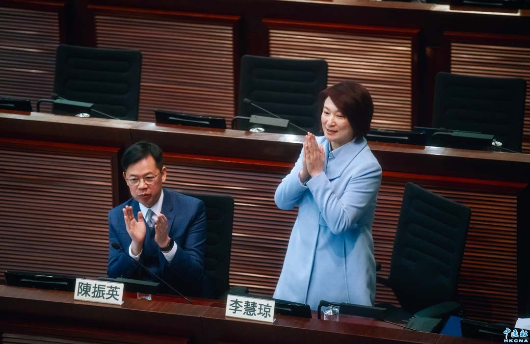 1月8日,新一屆香港立法會主席選舉,本屆兩位候選人分別是金融界議員陳振英和民建聯議員李慧琼。經過大約2小時的候選人特別論壇後,議員各自選出“心水”主席後進入點票時間。李慧琼擊敗陳振英,當選立法會主席。(香港中通社記者 陳奕啟 攝)