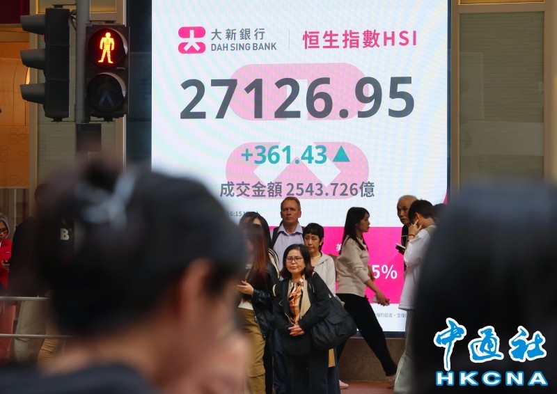 香港中通社1月27日電(記者 譚暢)港股升勢延續,恆生指數27日全日升361點或1.35%,報27126點;大市當日成交額約為2543.7億港元。港股近日已連升五個交易日,累計升639點或2.4%。