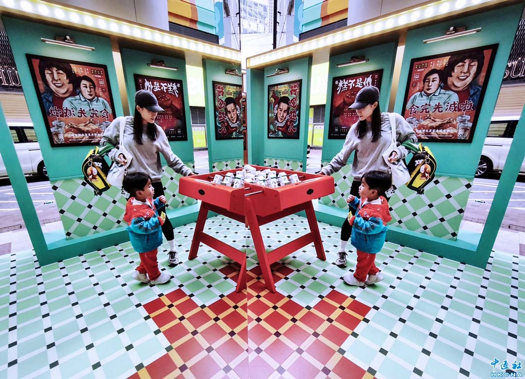 農曆新年將至,香港銅鑼灣利園商圈特別舉辦名為“利園賀歲首映”的節慶活動,結合電影、音樂與親子體驗等多元素,帶領市民一同回味港產賀歲片盛世,感受濃厚的節日氣氛。場景呈現港產片DJ音樂派對+懷舊戲院+親子手作工作坊等懷舊戲院復刻登場,重溫港產片經典時刻。 (香港中通社記者 洪少葵 攝)