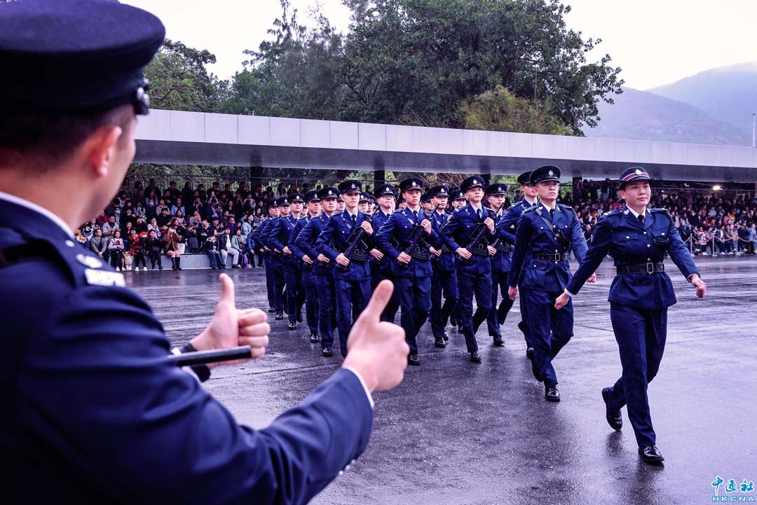 1月31日,香港警察學院舉行結業會操,保安局局長鄧炳強在典禮中檢閱畢業的見習督察和學警。(香港中通社記者 謝光磊 攝)