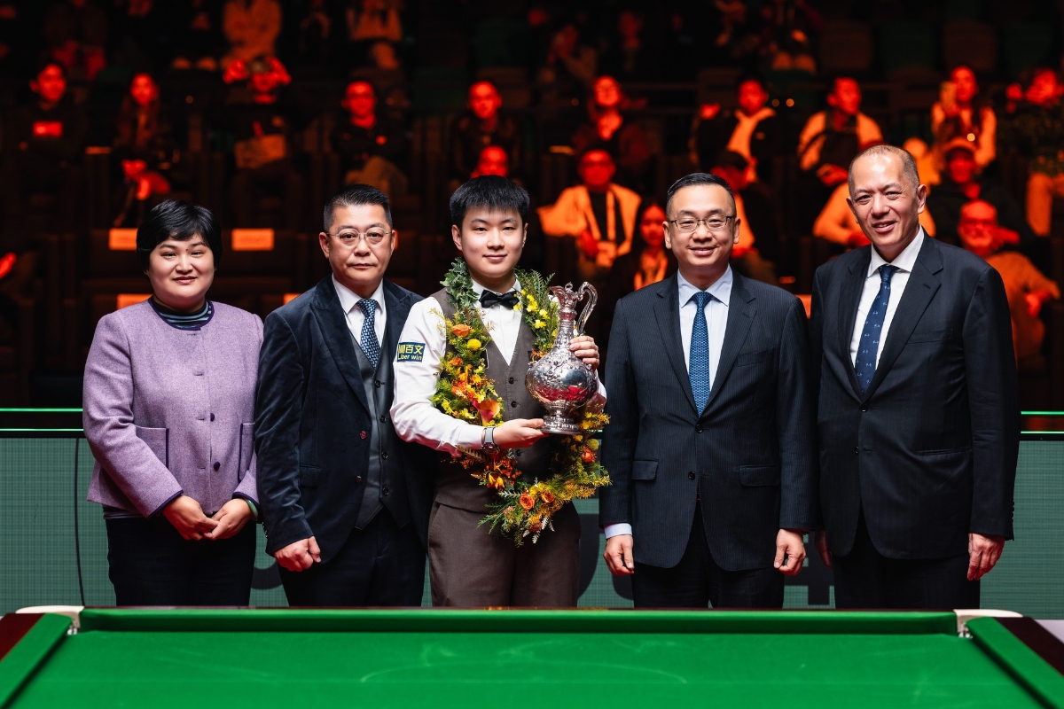 金利來集團主席曾智明為2026斯諾克世界大獎賽冠軍趙心童頒獎分享到: