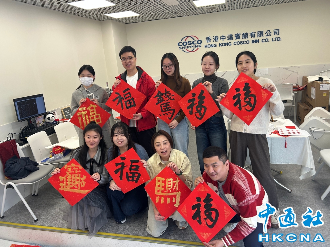 活動負責人、中遠賓館總經理助理裴斌對記者說,香港春節公眾假期只有三天,一些同學來自比較遠的省份,買不到機票和車票回家。手寫揮春是中國傳統手藝,希望將文化傳承下去,也讓大家新年拿個好彩頭,將祝福送給自己,也送給家人。(完)
