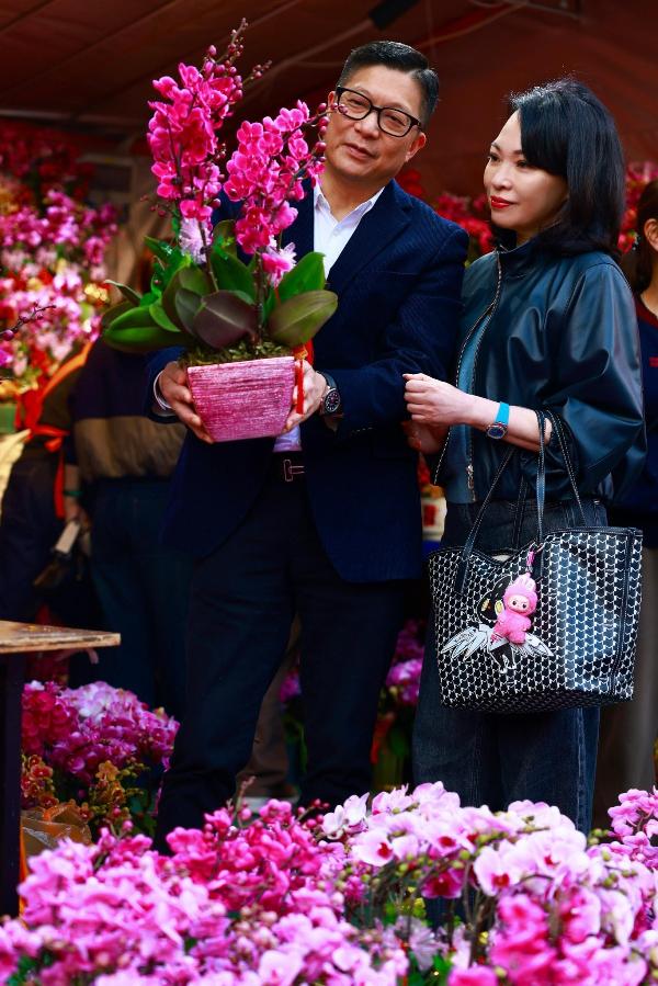 香港新聞網2月14日電 農曆新年將至,維園年宵市場現已開放。恰逢情人節,保安局局長鄧炳強14日與太太到維園年宵市場逛花市,並到紀律部隊攤位探班。