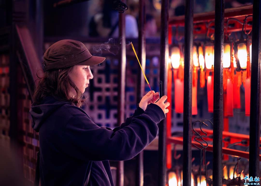 農曆新年,香港上環文武廟香火氤氳,暖意滿城。這座百年古剎供奉文昌帝君與關聖帝君,文脈與武德相融,是鬧市中最溫柔的祈福之地,不少市民和遊客喜歡到文武廟祈福,據說求學業和事業都很靈。 (香港中通社記者 徐文峰 攝)
