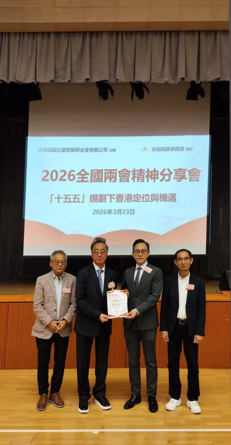 香港新聞網3月24日電 為深入學習、貫徹全國“兩會”精神,準確把握國家“十五五”規劃的戰略意義和方向,香港沙田地區社團發展聯合會23日首次舉辦“2026全國兩會精神分享會 ──‘十五五’規劃下香港定位與機遇”活動。