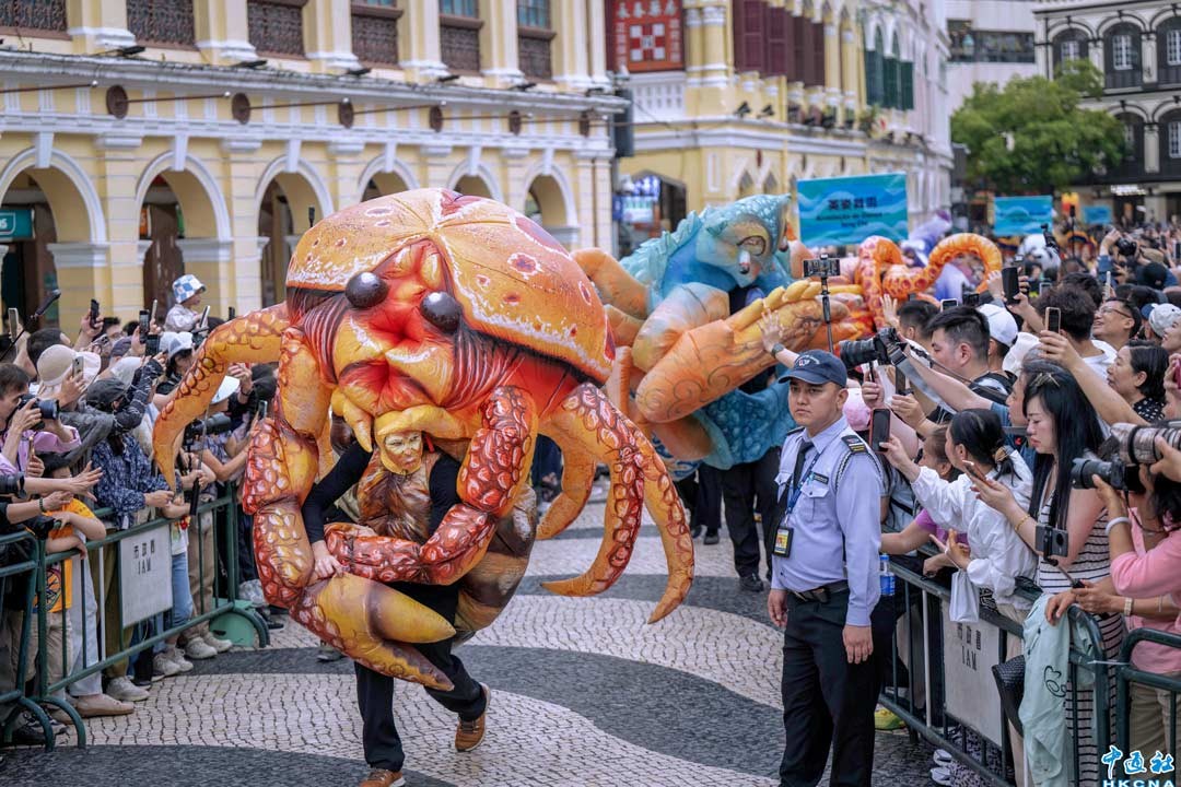 3月29日,澳門國際幻彩大巡遊盛大舉行,巡遊隊伍行經議事亭前地、大堂斜巷和南灣湖景大馬路一帶,沿路有大批市民旅客駐足欣賞,氣氛相當熱鬧。 香港中通社圖片