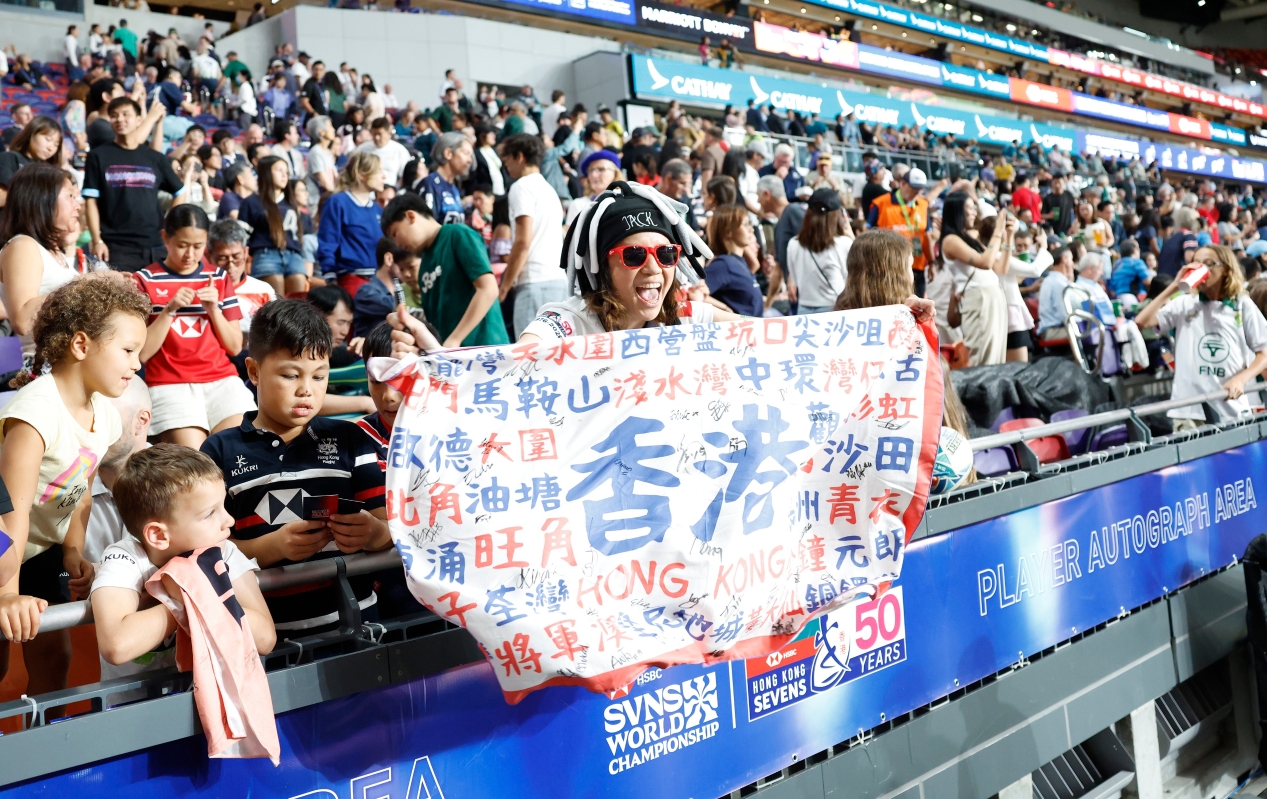 香港新聞網4月17日電(記者 陳奕啟 )4月17日,為期三天的國泰/匯豐香港國際七人欖球賽在啟德體育園開鑼,來自世界各地的30支隊伍帶來72場精彩賽事。 適逢賽事慶祝50周年,大會設置了板網球、體能競賽、投球等豐富多彩的運動和健身活動,供觀眾有更多體驗。首日現場氣氛熱烈,大批球迷盛裝打扮提前入場,現場如同大型派對。