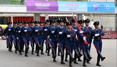 2026全民國安教育日|香港紀律部隊舉行升旗儀式 港警樂隊列“中國結”隊形