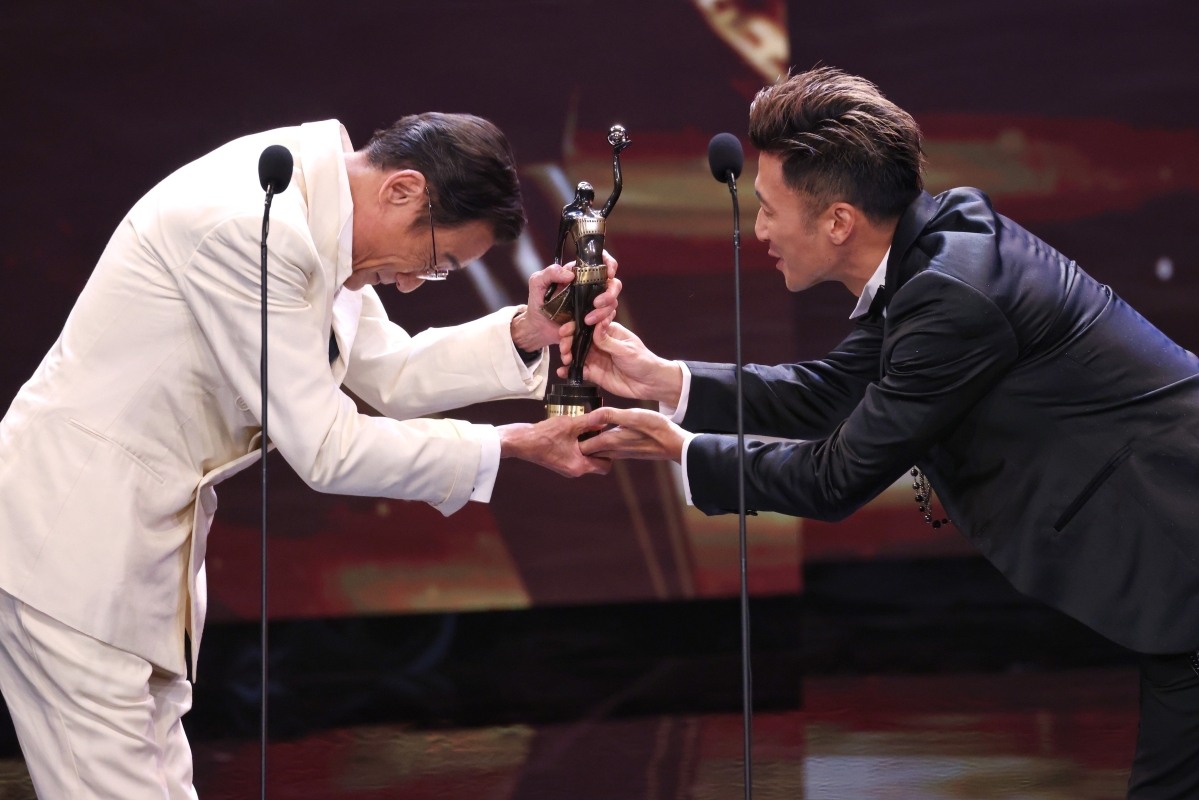 謝霆鋒(右)擔任頒獎嘉賓向梁家輝頒發最佳男主角獎項